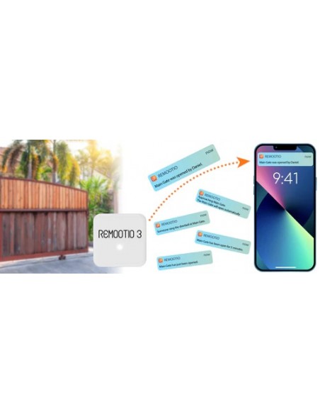 - Dispositif Remootio 3 : Appareil Bluetooth et Wi-Fi permettant de contrôler et de surveiller les portails et portes de garage.